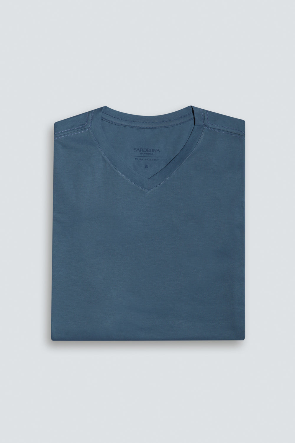 NEW T-SHIRT PIMA VNECK MEDIUM BLUE