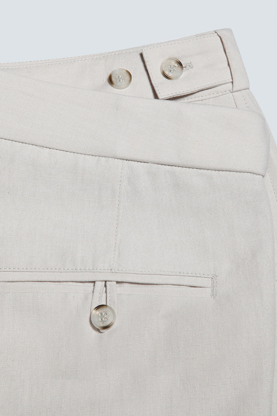 • Bolso posterior com vivo único e abotoamento