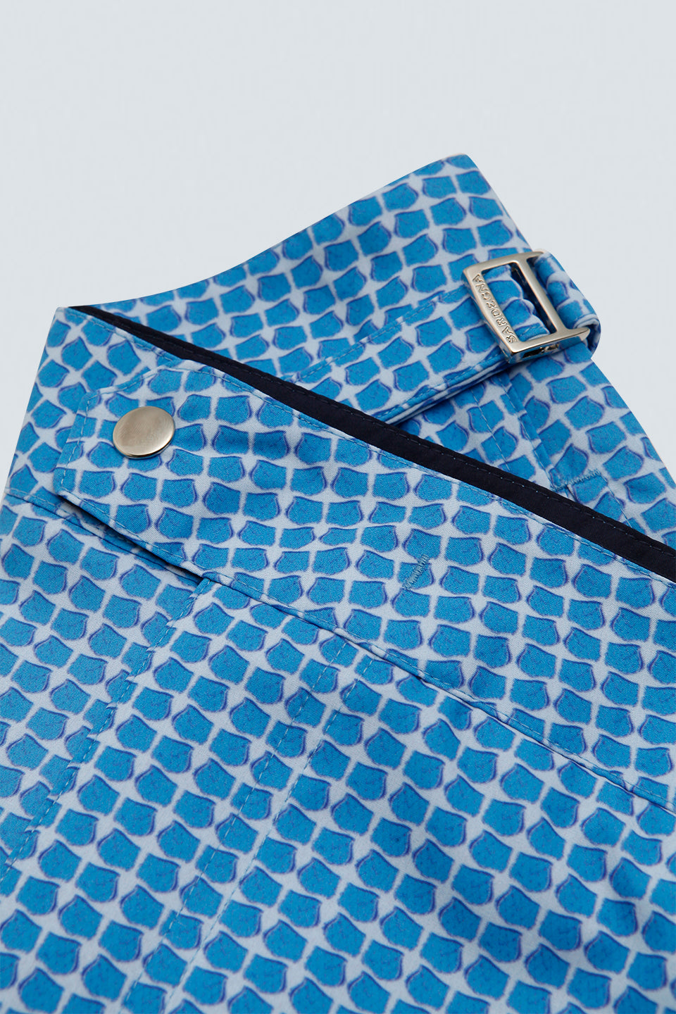• Bolso posterior com vivo único e fechamento em zíper;