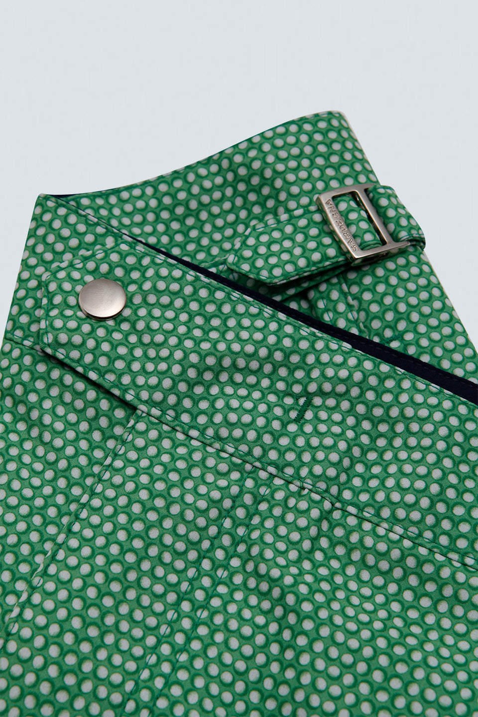 • Bolso posterior com vivo único e fechamento em zíper;